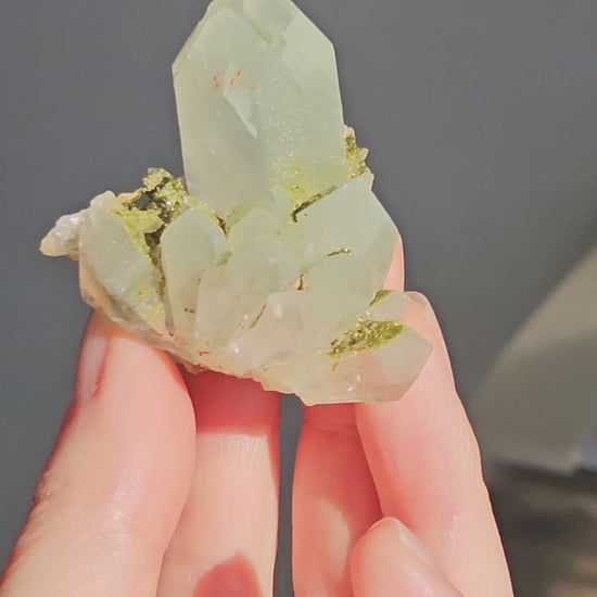 This stunning Chlorite Quartz with Epidote from the sacred mountains of Hakkari, Turkey, is a powerful ally for grounding, nervous system regulation, and deep meditation. Infused with the heart healing energy of Chlorite and the stabilising properties of Epidote, this crystal supports a sense of inner calm and energetic alignment.