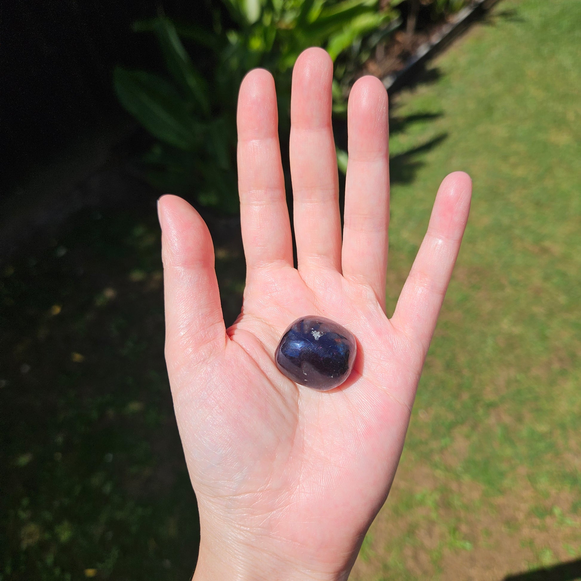 A premium covellite tumble featuring an intense metallic indigo lustre with subtle purple iridescence in natural light. Covellite is a soft copper sulfide that rarely achieves such an even polish, making high-quality finished specimens uncommon. It is also a sought after stone within the spiritual circles.