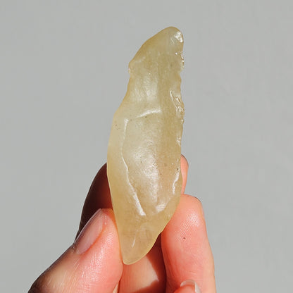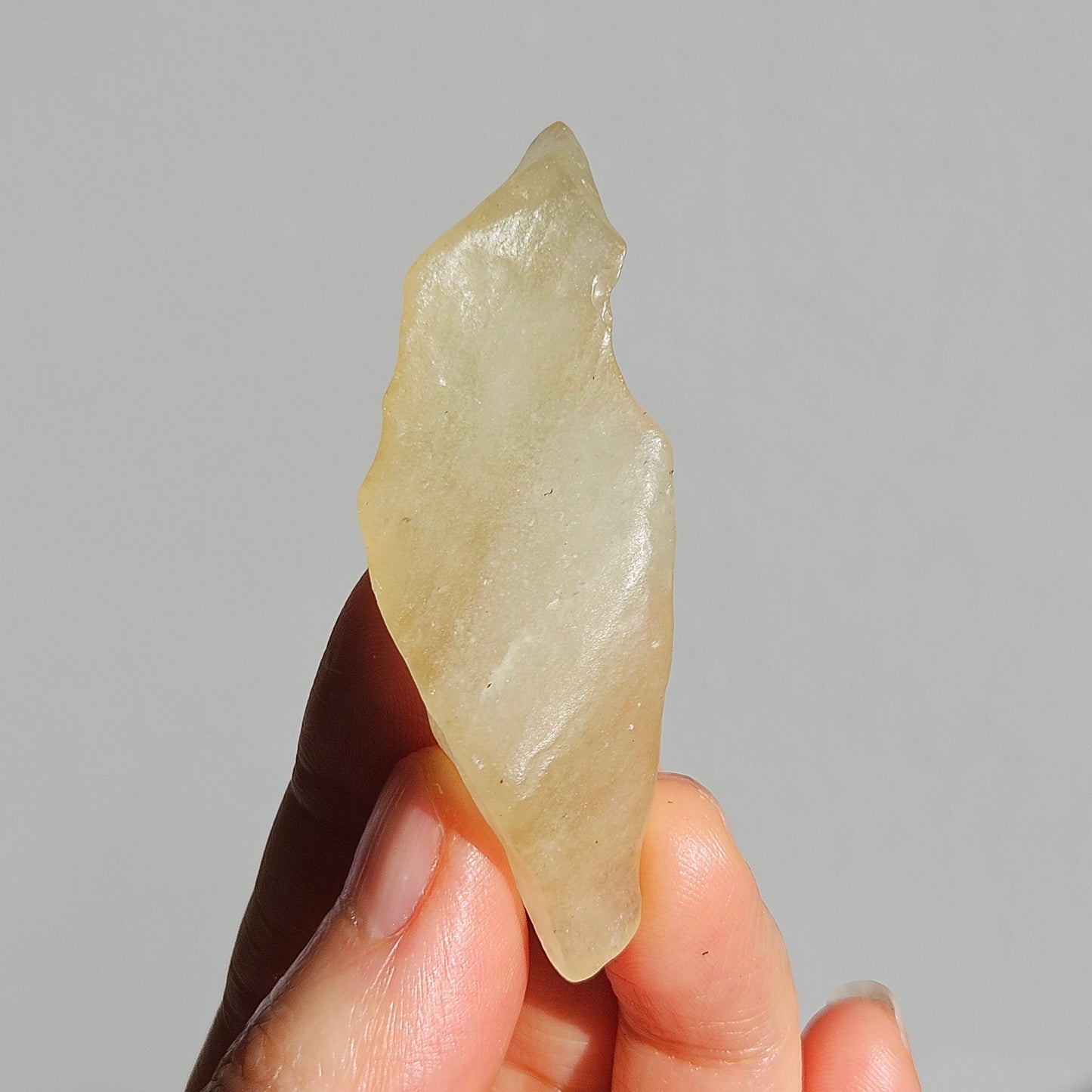 When I first held this Libyan Desert Glass, I felt a radiant beam of energy entering through my third eye, lighting up my face with a golden brightness. It was as if I had stepped into a shimmering golden robe or had been placed inside a crystalline chamber of light. My entire energy field felt uplifted, revitalized, and expanded.