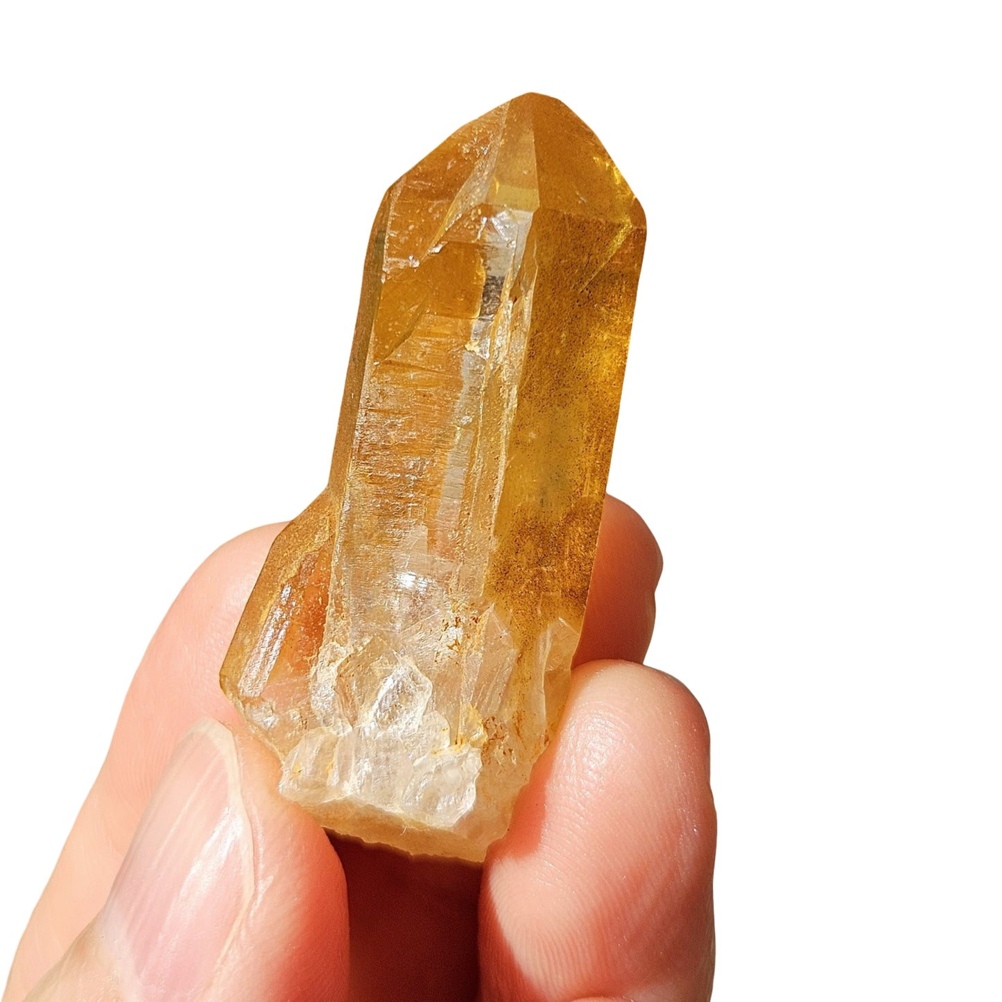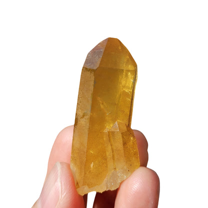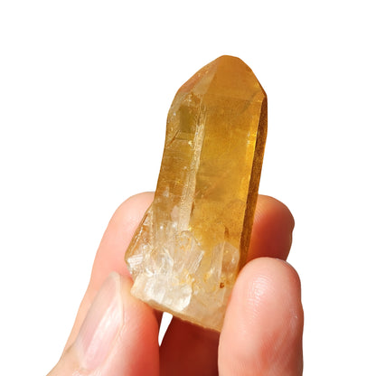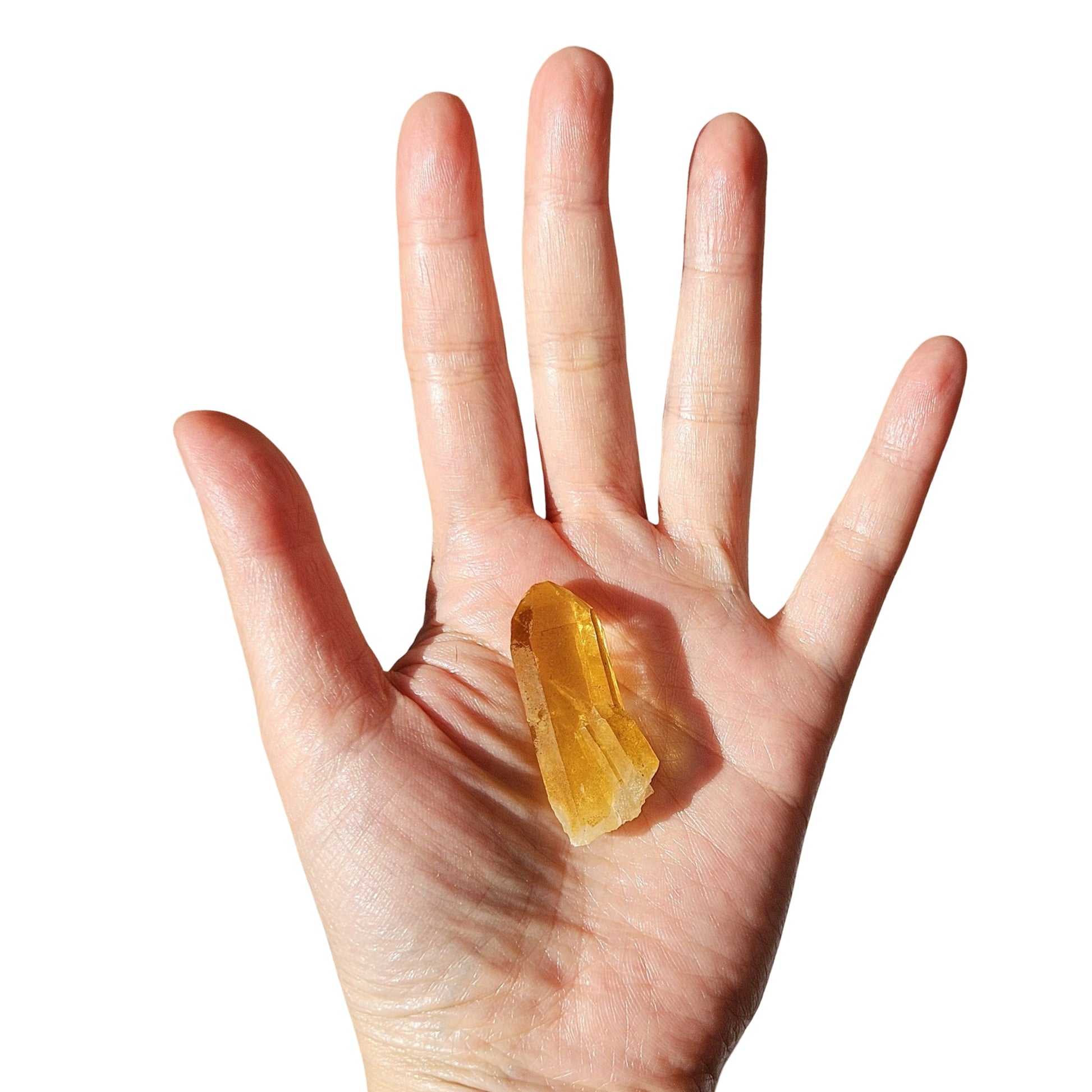 This vibrant Tangerine Quartz gets its rich orange hue from a natural iron oxide coating. Energetically, this piece feels strong and deeply aligned. It works to harmonize the higher and lower chakras, encouraging a sense of uprightness and flow along the spine.
