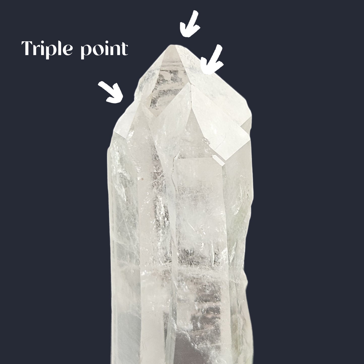 When the triple-pointed side faces away, it creates a sense of freedom, liberation, and lightness. It helps align you with higher ideas and insights, supporting you in finding answers to the questions you hold within. Meditate with this crystal when seeking guidance from your higher self or divine guides.